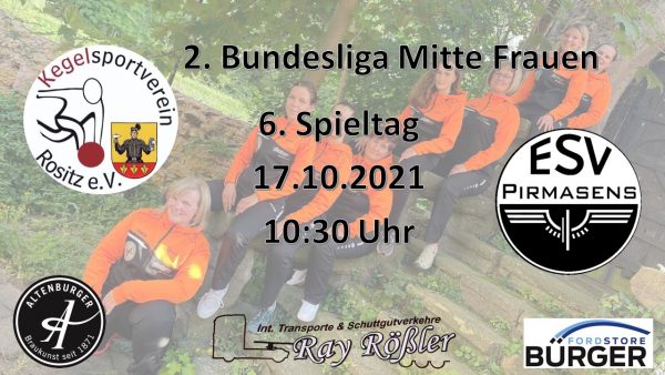 2. Bundesliga Mitte Frauen: Kegelsportverein Rositz – ESV Pirmasens 4 : 4 Das war nichts für schwache Nerven! Unsere Frauen spielen mannschaftlich geschlossen, haben aber in den entscheidenden Situationen nicht das nötige Glück. Ein starkes Schlussduo gewinnt noch einen Punkt…. Weiterlesen →