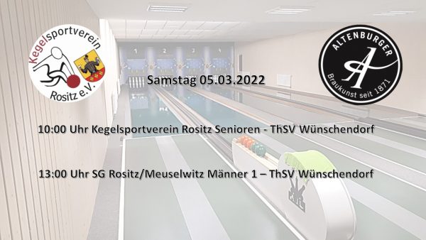 2. Bundesliga Mitte: Kegelsportverein Rositz Frauen 1 – ASV Fronberg Das Spiel kann unter folgendem Link im Ticker mitverfolgt werden: Kegelsportverein Rositz – ASV Fronberg Landesliga 120 Wurf Staffel 1: KSC Turbine Schmölln – SG Rositz/Meuselwitz Männer 1 Das Spiel… Weiterlesen →