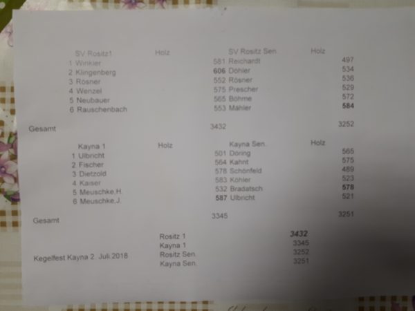 Am Samstag waren unsere Männer zu Gast beim Heimatfest unserer Freunde aus Großgrimma. Und es war eun Kegelturnier welches wie vom Gastgeber gewünscht an Spannung nicht zu toppen war. Den Beginn machten die Startspieler unserer Zweiten, Christian Günther spielte 386… Weiterlesen →