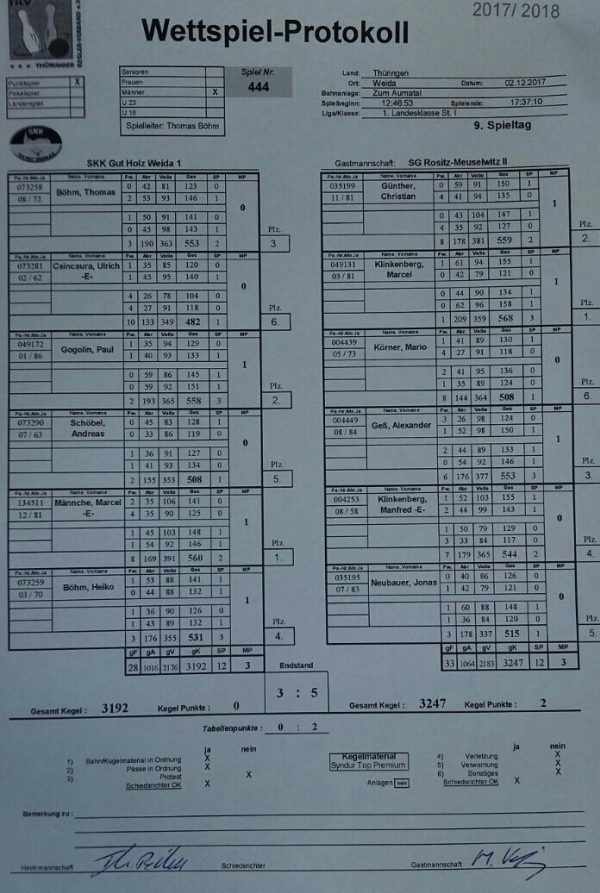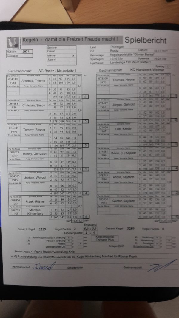 Hier ein kurzer Überblick über die Ergebnisse vom Wochenende. Die vollständigen Spielberichte können unter Mannschaften/Ergebnisse und dort auf der jeweiligen Mannschaftsseite nachvollzogen werden. SG Rositz/Meuselwitz I – KC Handwerk Weimar 5 : 3 Heimbestleistung unserer 1. Männermannschaft im letzten Spiel… Weiterlesen →