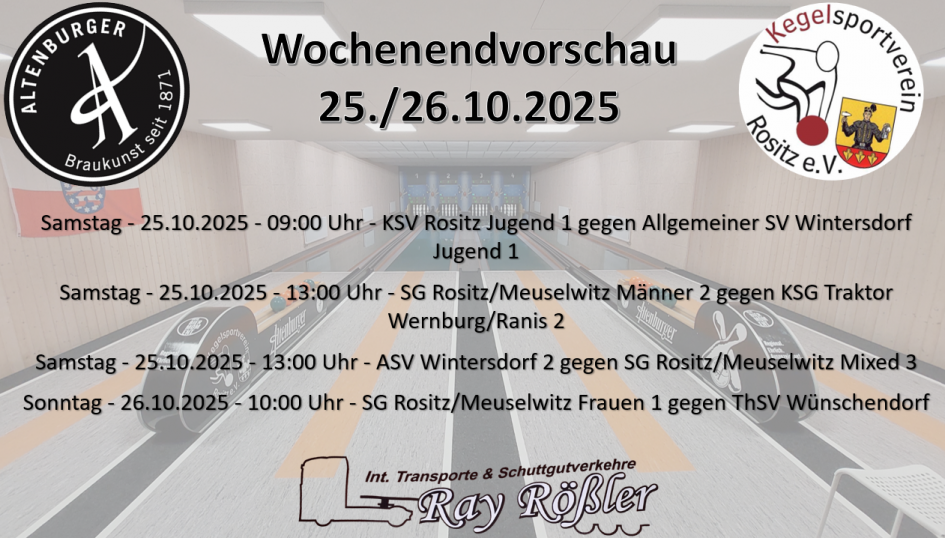 Samstag – 25.10.2025 – 13:00 Uhr – ASV Wintersdorf 2 gegen SG Rositz/Meuselwitz Mixed 3