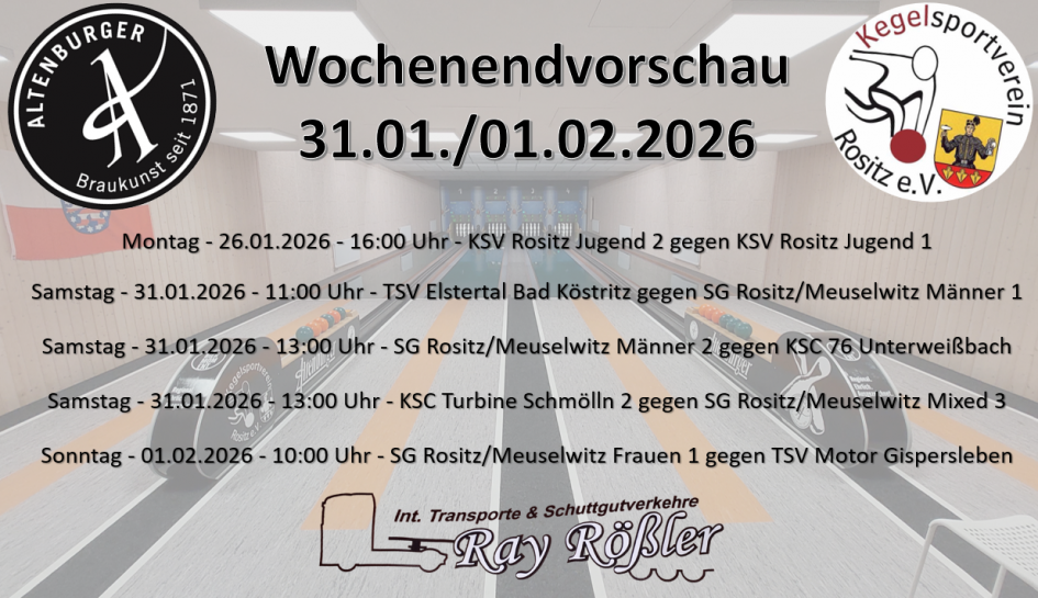 Samstag – 31.01.2026 – 13:00 Uhr – SG Rositz/Meuselwitz Männer 2 gegen KSC 76 Unterweißbach